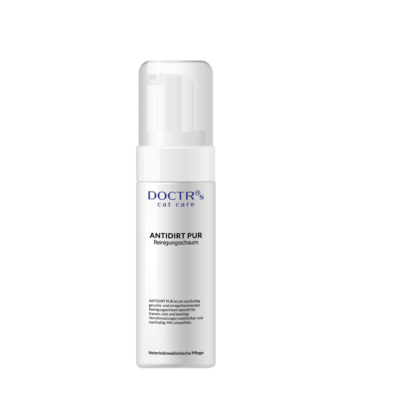 ANTIDIRT PUR ist ein nachhaltig geruchs- und erregerhemmender Reinigungsschaum speziell für Katzen . Löst und beseitigt Verschmutzungen unmittelbar und nachhaltig. Mit Lotuseffekt.